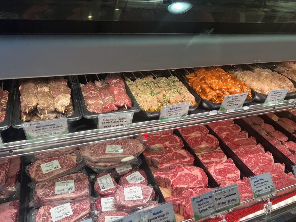 Freshly Cut Steaks and Kabobs were available from multiple vendors.
