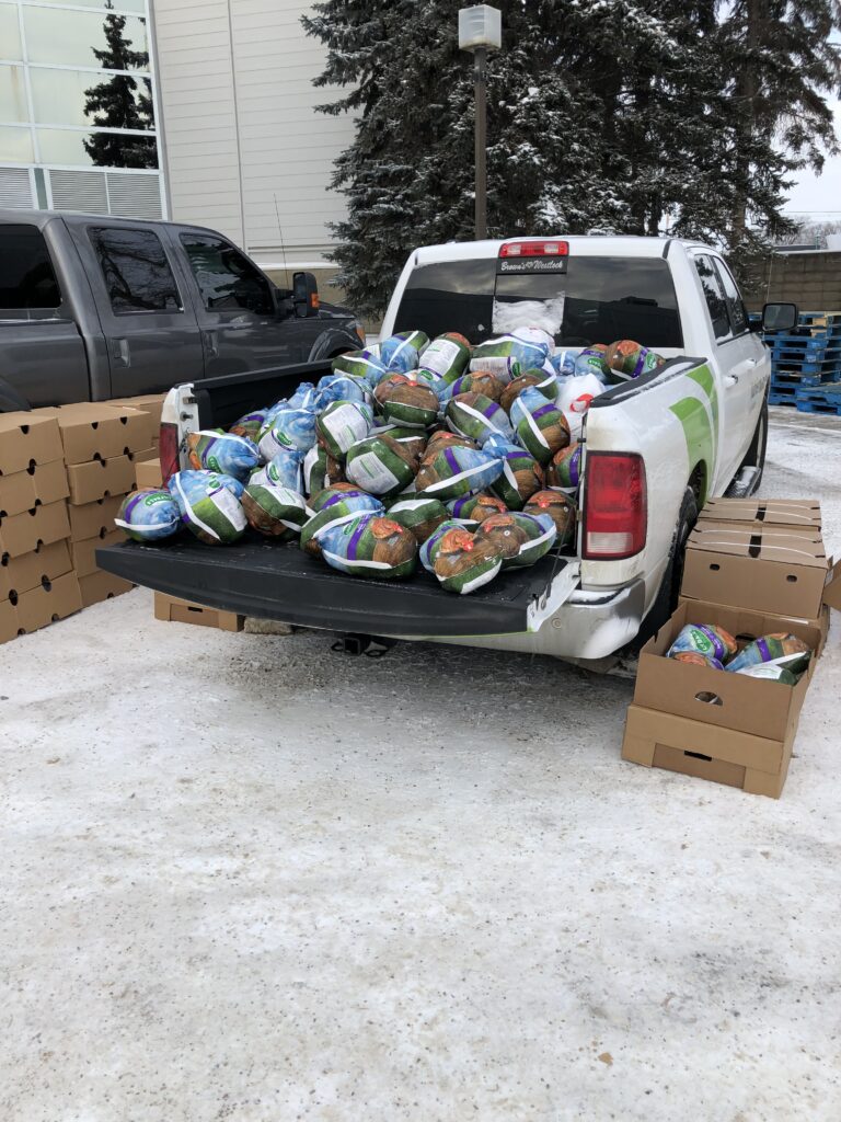 Fast Forward to a week before Christmas, the Pontiac Club goes shopping for gifts for the families. My work team goes food shopping and then a day before delivery we put together the hampers. It’s a crazy busy, stressful, but heart warming day. Delivery day we load up 7 trucks full of groceries and toys and head to Northlands to pick up our Turkeys and get the addresses of our adopted families.